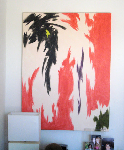 This is one of my original pieces...just red, I know, but there's something I love so much about dramatic colored paintings against stark walls, and I didn't want to detract from the contrast. The texture adds just enough interest for me.